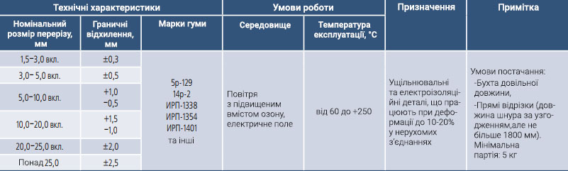Шнур прямокутного перерізу (розміри перерізу 10,0х12,0 мм) з гумової суміші 5р-129